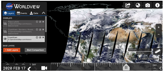 NASA的“近实时陆地和大气数据观测能力”(简称LANCE)使地球观测系统(EOS)在卫星观测的三小时内可从十个NASA仪器获得数据,以满足诸如天气和气候预报等及时需求,预测和监测自然灾害、农业和空气质量、提供救灾援助和保障国土安全。 LANCE用户可使用NASA的Worldview功能查看这些近实时数据。