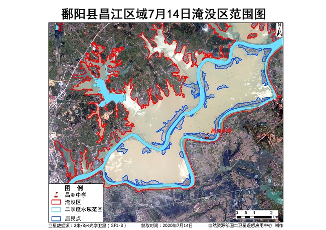 图2 江西鄱阳昌江区域7月14日淹没区范围图